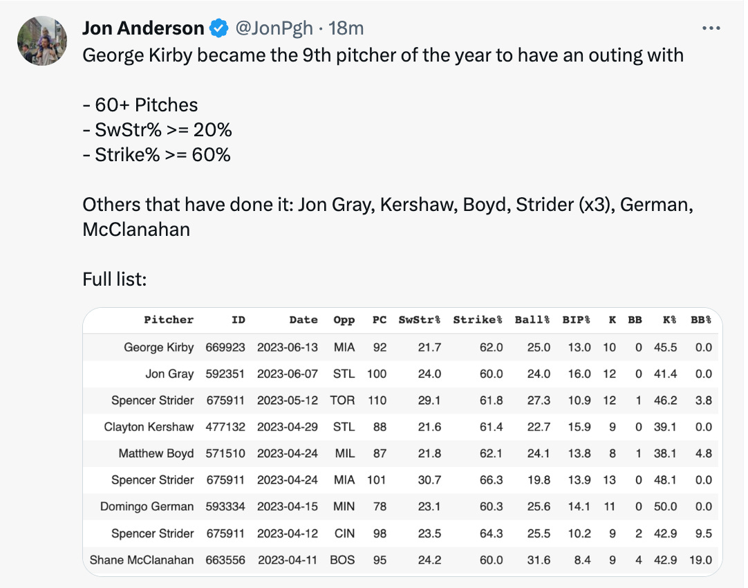 One of the best starts of the entire 2023 season last night came from George Kirby