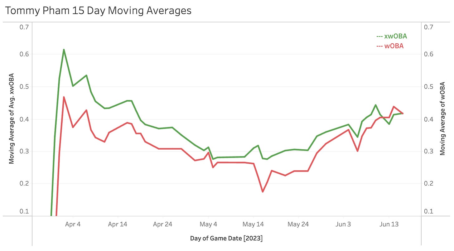 Tommy Pham followed me on Twitter yesterday, so shout out Tommy Pham! He’s at the top of a few of these recent leaderboards.