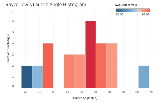 So I started writing about Royce Lewis and ended up with that. I really love these Launch Angle histograms which you can find on the “LA Analysis” tab of the main dashboard.