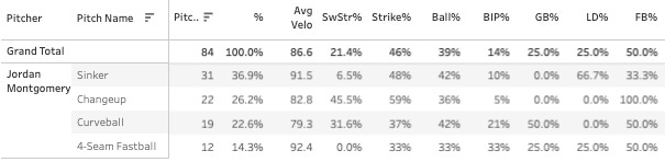It’s good to see Montgomery get the monkey off his back and have a good start, but we can’t just immediately forget about how he’s been overall this year (4.83 SIERA, 15.4% K%, 8.3% BB%).