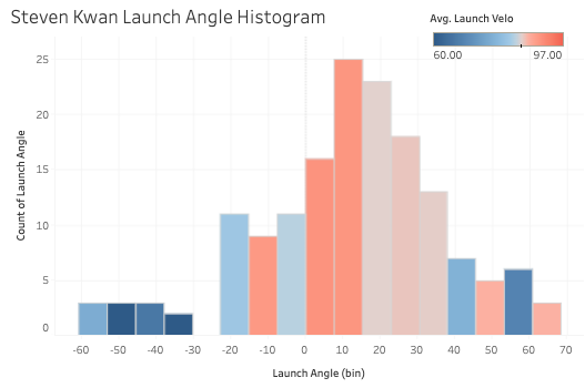 Kwan’s average launch angle is 12 degrees. Batted balls hit at 12 degrees have an .803 batting average.