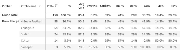 Drew Thorpe's FF usage (50.0%) up 13.3 points