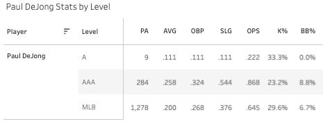 Most interesting to me is DeJong, who has been all over the place the last several years. Since 2021 he has been with the White Sox, Giants, Cardinals, and Blue Jays and has a .645 MLB OPS.
