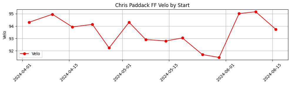 Louie Varland's FC velo (21 pitches) DOWN -1.5mph to 87.9