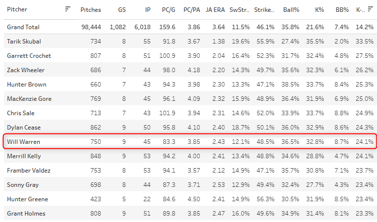 Since May began, he has a 25.4% K% and a 6.1% BB% with a 3.02 JA ERA. It’s all pretty good.