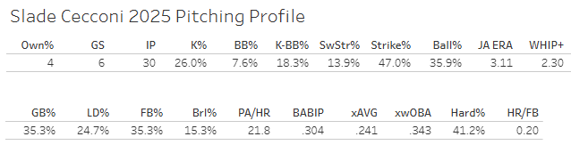 We see Cecconi now with a 4.15 ERA, but a 3.67 SIERA. And the pitch mix looks pretty good too.