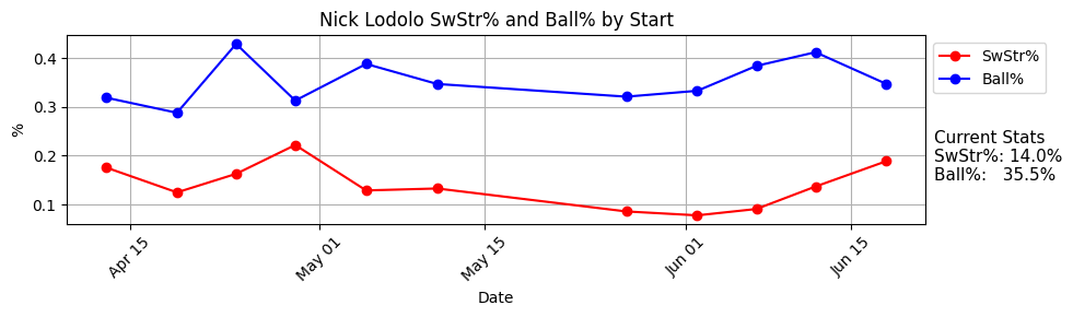 Lodolo has a 20.5% K-BB% and great 14% SwStr% now, he’s a top-20 SP when healthy, but there are still big question marks about his ability to stay healthy.