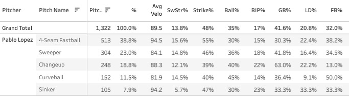 Pablo Lopez's ST usage (33.3%) up 11.6 points