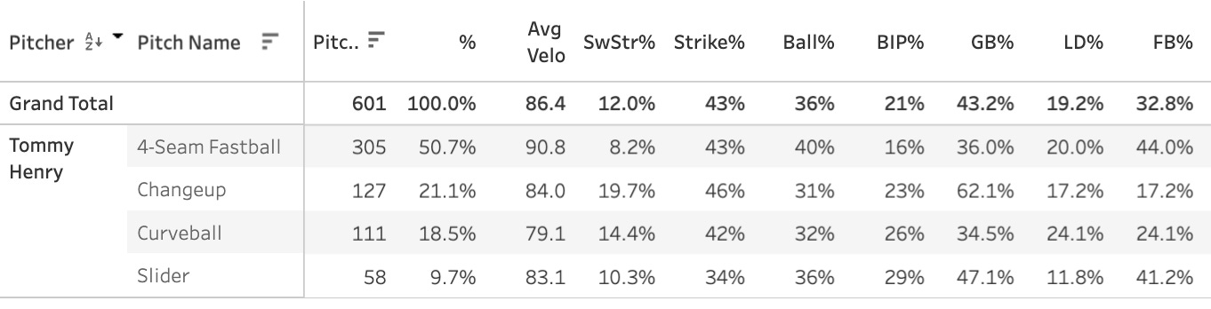 11. Tommy Henry (ARI): 50.5 Strike%, 33.7 Ball%
