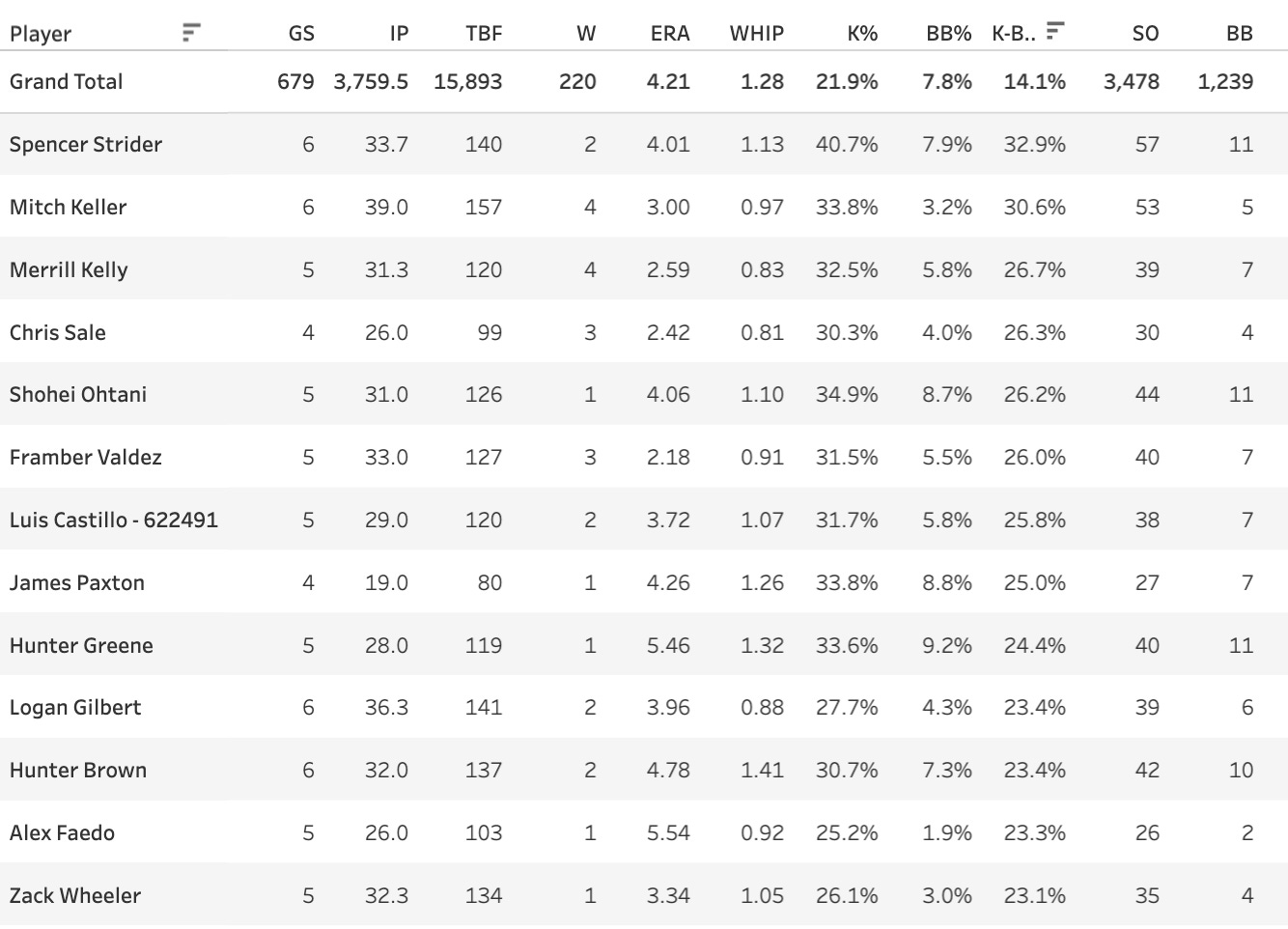 Tommy Henry put up a big number on the road Rockies. For the year he has a 12% SwStr% and a 43% Strike%, so he’s looking a little bit below average - but he’s shown off some upside recently, you have to give him that!
