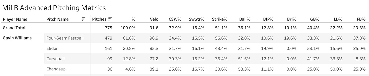 Brandon Williamson 4-Seam Fastball: +14.0%