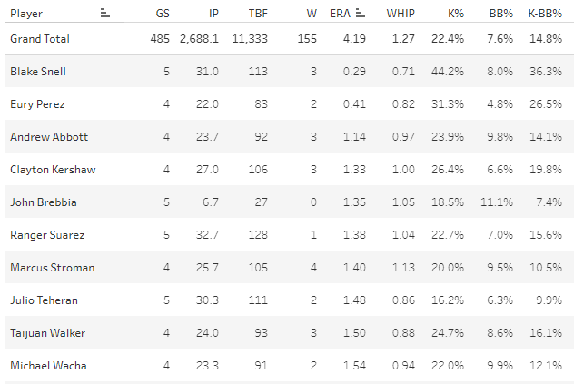 Blake Snell - 91 TBF, 40.7% K-BB%
