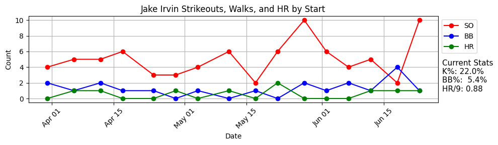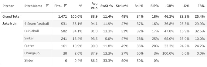 He now has a 22.1% K% and 5.2% BB% on the season, a pretty solid 17% K-BB%. The 46% GB% is useful too. Irvin should be considered a better-than-average big-league starter.