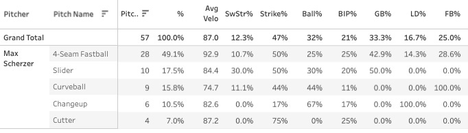 1. Max Scherzer: 57 Pitches, 15 Outs, 3.8 POUT