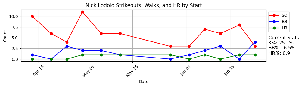 You never want to see more balls than strikes, but that’s what Lodolo did yesterday. Since his most recent IL stint, he’s done this: