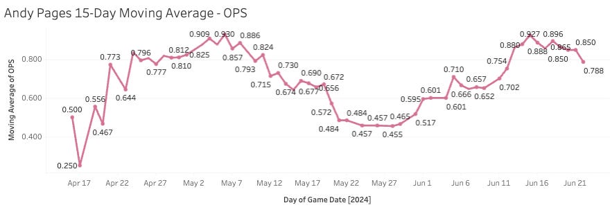 Last 89 PAs: .308/.393/.487, 3 HR, 22.5 K%, 10.1% BB%