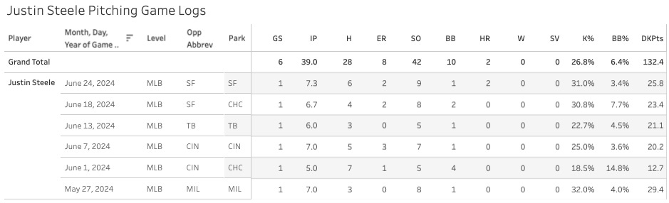 5. Justin Steele: 106 Pitches, 22 Outs, 4.82 POUT
