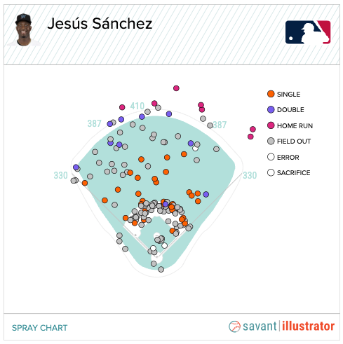 With the lack of steals and lack of playing time/production against lefties, I don’t view Sanchez as someone you want in a standard league. But he should improve a lot from the current slugging percentage, so he’s useful in deep leagues - especially ones where you can just start him against right-handed pitching.
