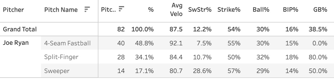 Obviously, you’re starting Joe Ryan going forward, but I’m also going to keep going on Whitlock, nothing here to worry about, if you’re going to post a high SwStr% and a low Ball% at the same time - you’re going to be good over the full sample.