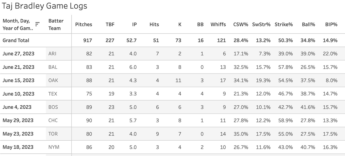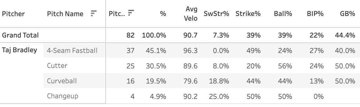 Disaster start from Taj Bradley in Arizona. That’s a tough offense to take down, but everything was really bad for him.