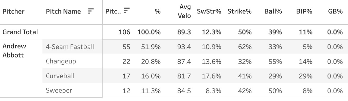 Andrew Abbott had another good outing, posting another quality start and giving up just one run and even going for eight strikeouts. The bad news