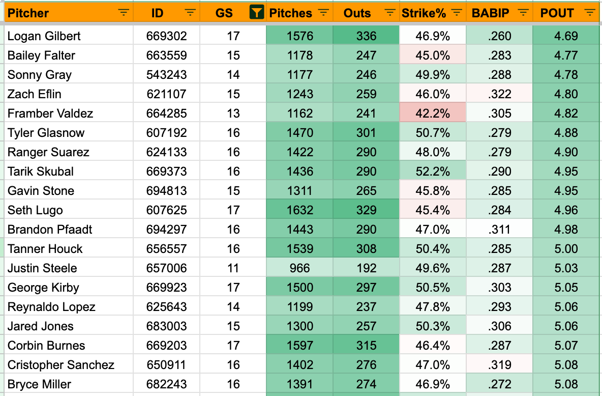 10. Logan Gilbert: 92 Pitches, 18 Outs, 5.11 POUT