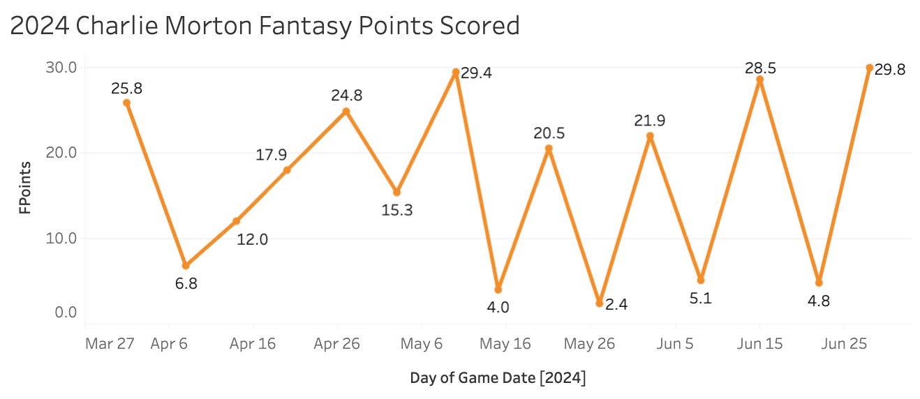 2. Charlie Morton (vs. PIT): 29.84 Points