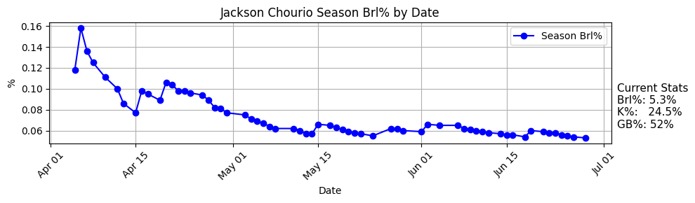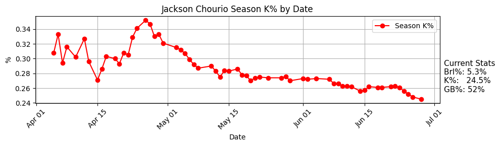 The other name to mention is Jackson Chourio. His strikeout rate continues to improve.