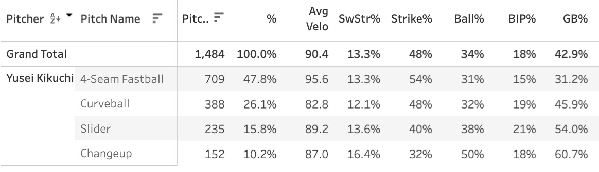 Yusei Kikuchi - 75 TBF, 34.1% CSW%