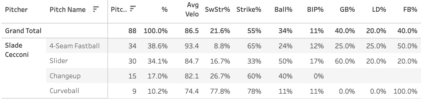 Slade Cecconi had his best start of the season by many metrics, but not the box score ones.