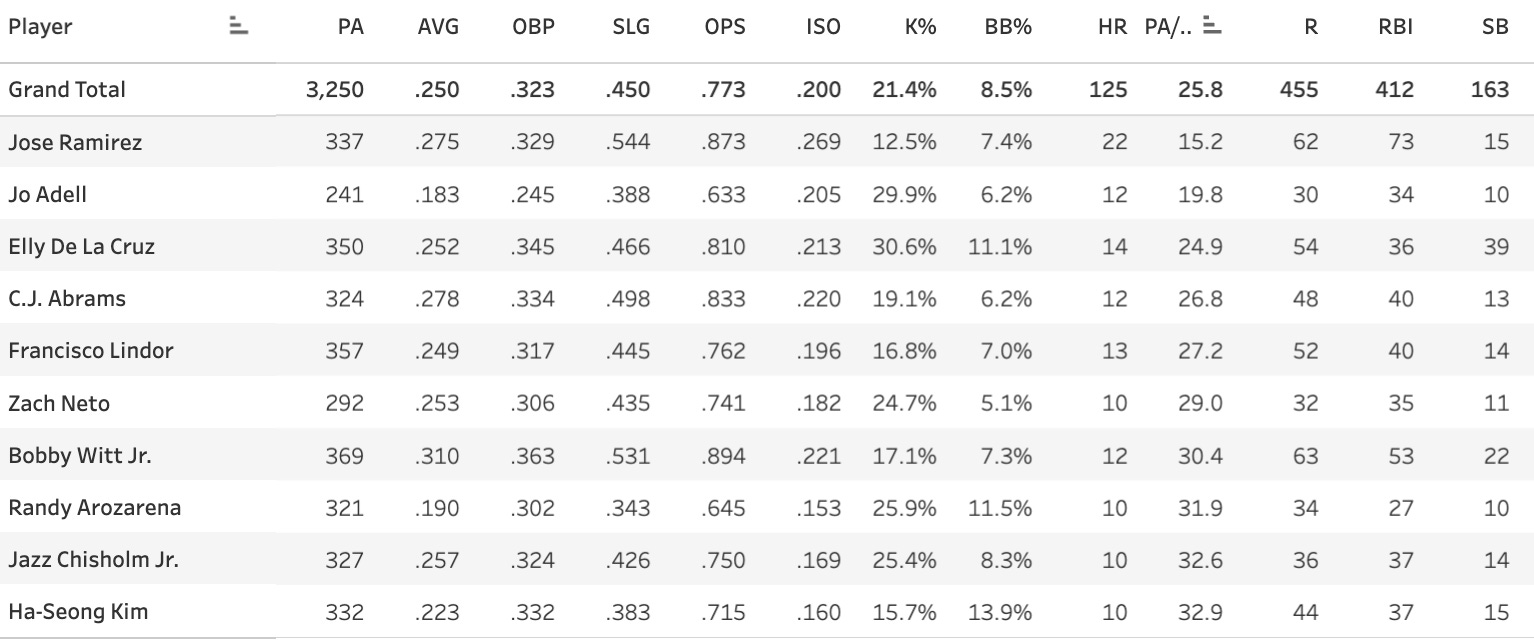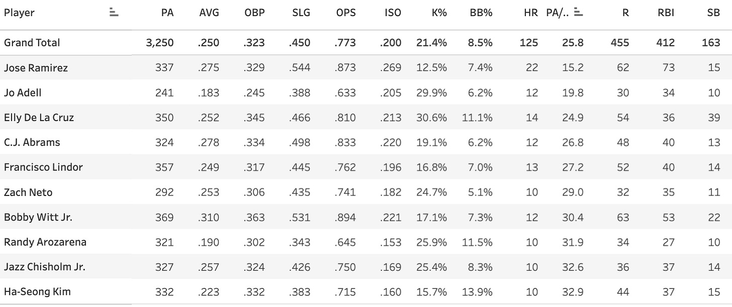 That’s the full list. Only Ramirez, Elly, Abrams, and Neto have a batting average above .250.
