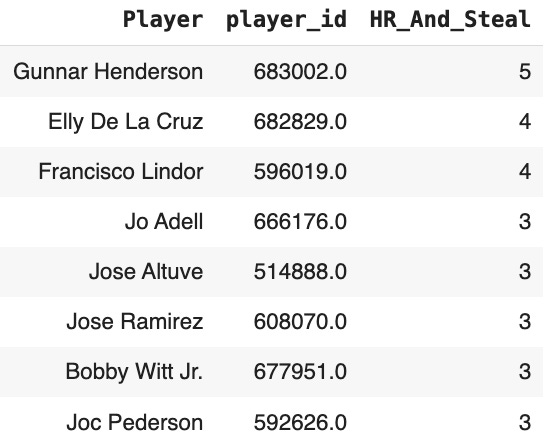 Brenton Doyle had a combo meal, a smash-and-grab, a blast-and-dash! That means a home run and a steal in the same game. That was the first time he had done that this year.