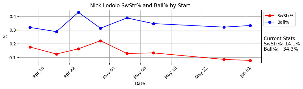 May-Jun: 11.7% SwStr%, 48% Strike%, 31% Ball%