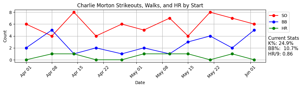 The 35.7% Ball% is still better than average but it’s worse lately. And Morton doesn’t the same strikeout ability that he used to being so reliant on the curveball, so it’s not looking all that great for ole Ground Chuck.