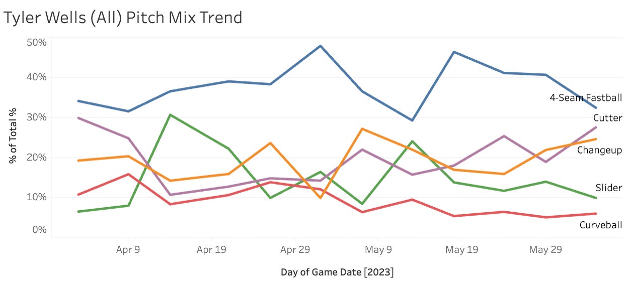 Tyler Wells - 67 TBF, 29.9% K-BB%