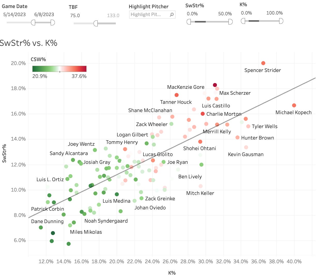 1. Spencer Strider (ATL): 58.6 Strike%, 27.6 Ball%