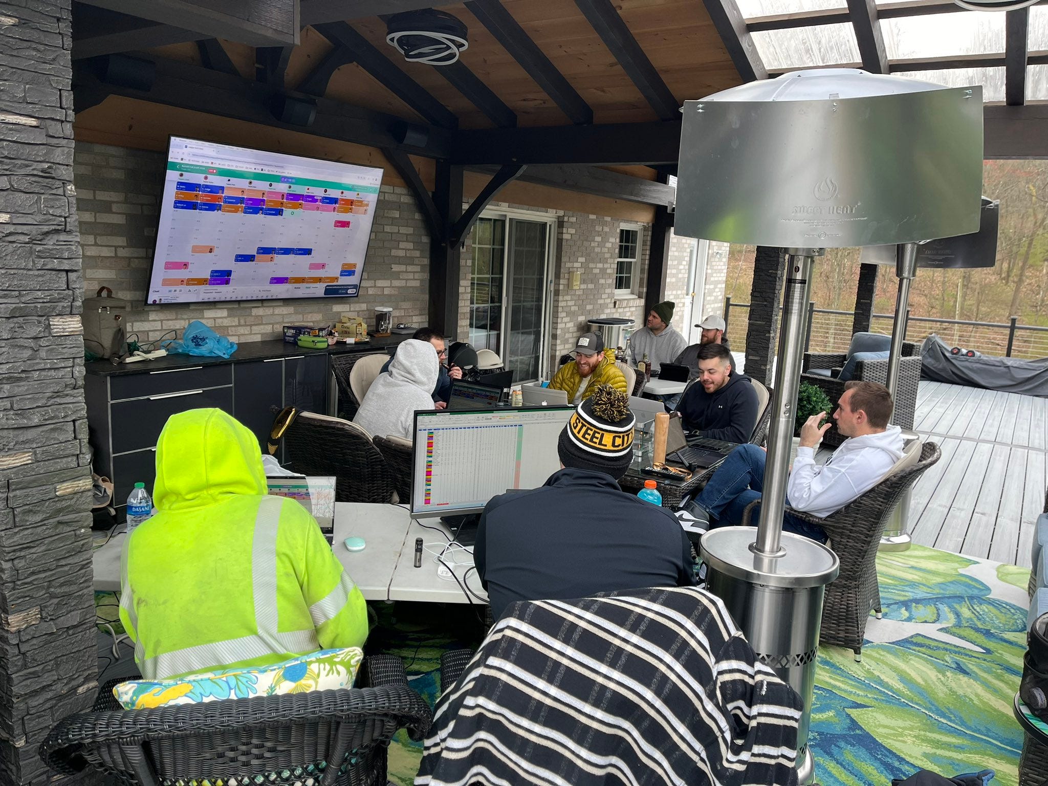 We did the home league draft on Saturday back in the town where I grew up, so that was incredible. My buddy’s dad has this crazy nice deck so we all posted up out there with multiple heaters and got the job done. Not the perfect weather, but it was good enough and it got really nice by the second half of the draft or so.