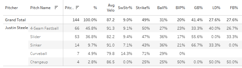 Justin Steele got a win, but wasn’t good. He’s now had two poor outings and sits with a 9.0% SwStr% and three homers allowed.
