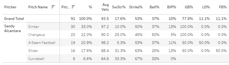 The biggest thing to notice there is that 17.6% SwStr%. That’s not normal for him. He’s been a below-average whiffs pitcher in his career. This was probably just a one-off thing, but we’ll see. The changeup was sick and he even kicked in some whiffs on the slider and curve. There aren’t too many better matchups in the league than the Pirates, but Sandy is an absolute must-start every time.
