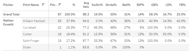Nathan Eovaldi was quite good in his own right. A little 9:0 K:BB with a 19.5% SwStr% and a 31% Ball%.