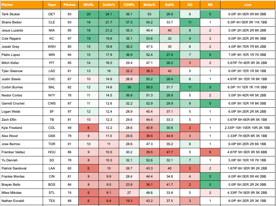 1. Tarik Skubal (DET): 20 Whiffs (83 Pitches)