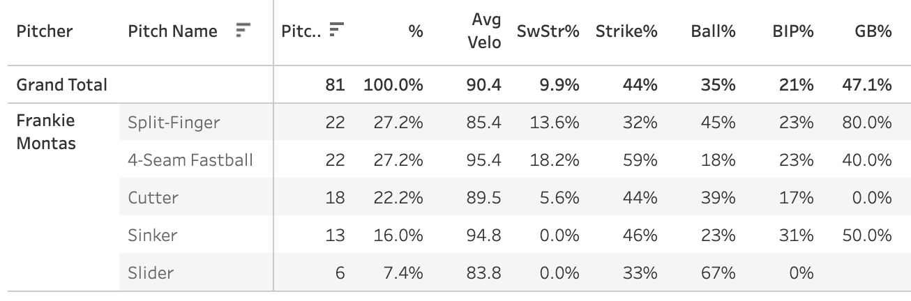 Frankie Montas's FF usage (27.2%) up 15.7 points