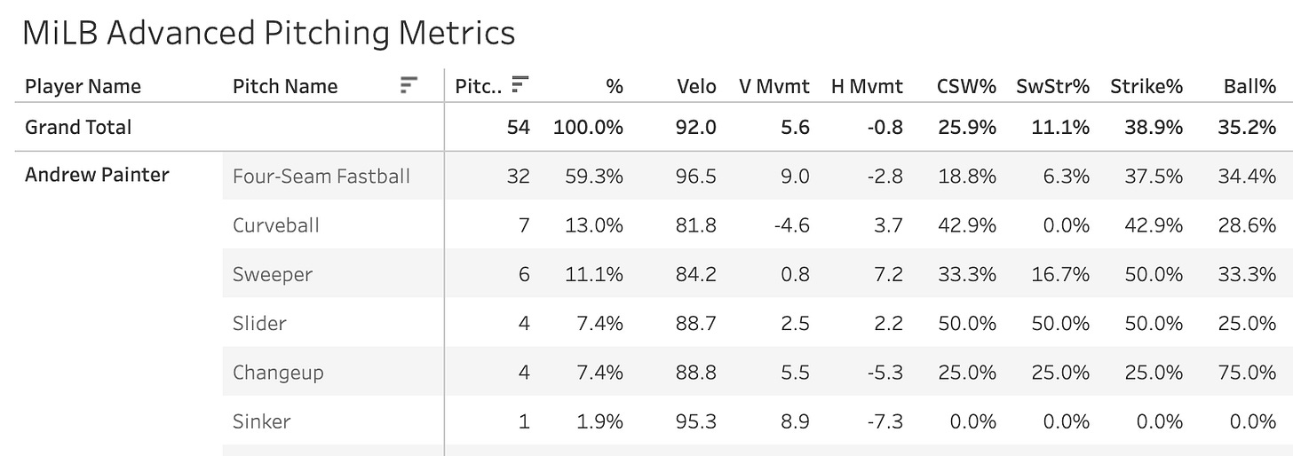 And it’s a unique situation with Painter in that all of the post-surgery data we have on his fastball is bad news. He wasn’t getting whiffs on it last year against minor league hitters. So something has to change if he has any chance against MLB hitters this year.