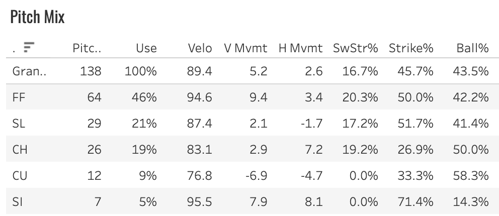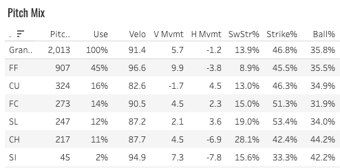It’s all about the fastball, I think. I mean, it’s not all about it, but it’s the most important thing. If he can’t get strikes and whiffs with the four-seamer, nothing else really matters in my view.