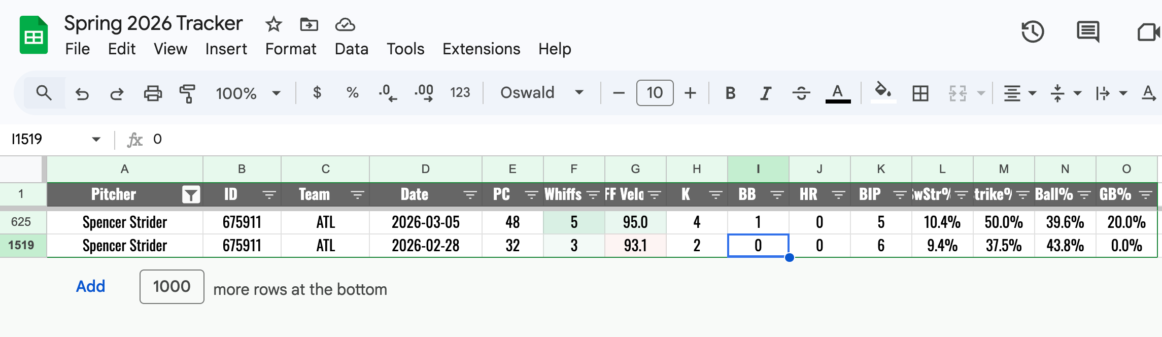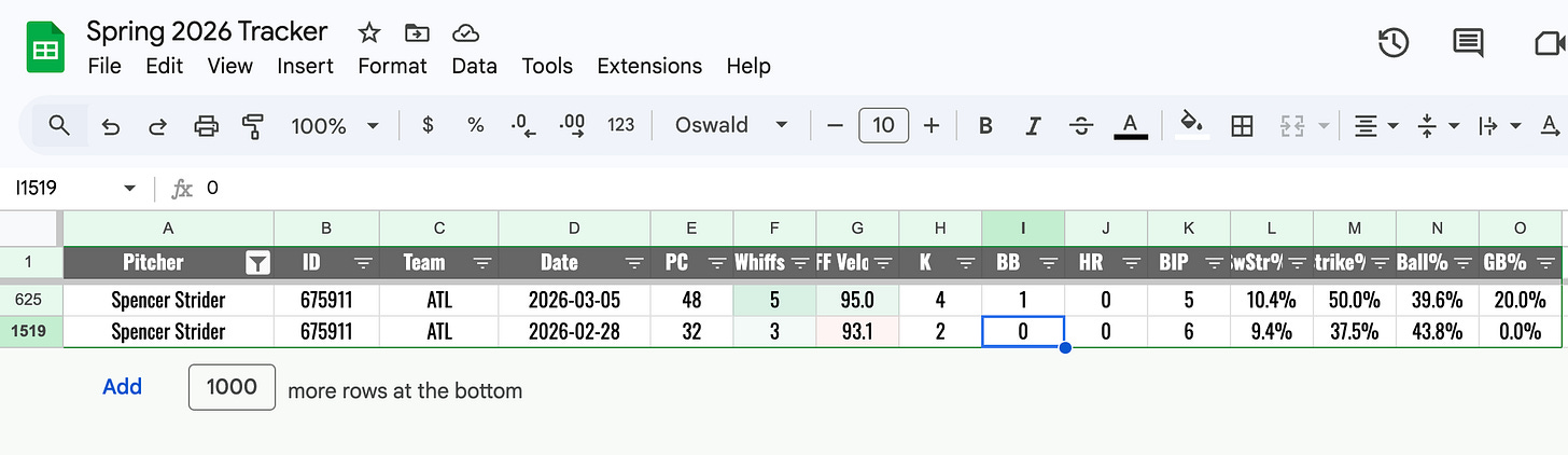 I’ve added FF velo to the spring pitch game logs tab in the spring google sheet: