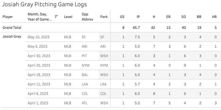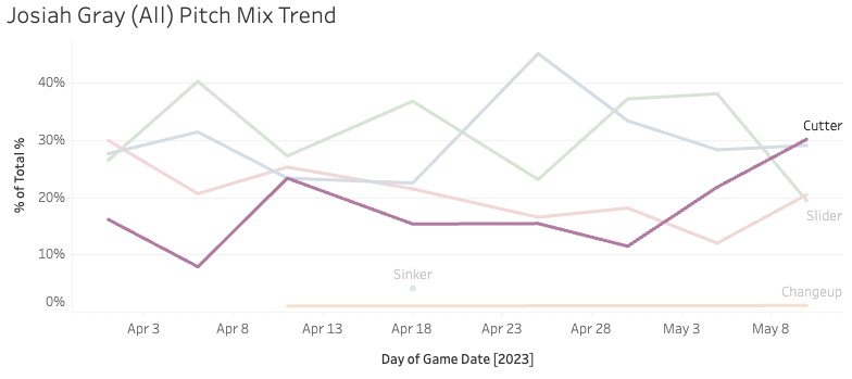 Josiah Gray's FC usage (30.1%) up 14.2 points