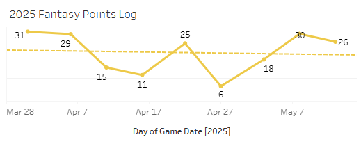 He’s now six starts in now with a 31.7% K% and a 10% BB% with an elite .249 xwOBA allowed. He’s one of just 14 SPs with an xERA under three so far this year.