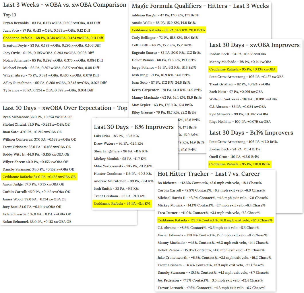 Ceddanne Rafael is the standout right now. I think you should go add that guy, because all of the signs are pointing to him being about to go off.