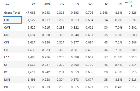 Six of the league’s bottom 10 offenses (using xwOBA) are in either the AL Central or NL Central.