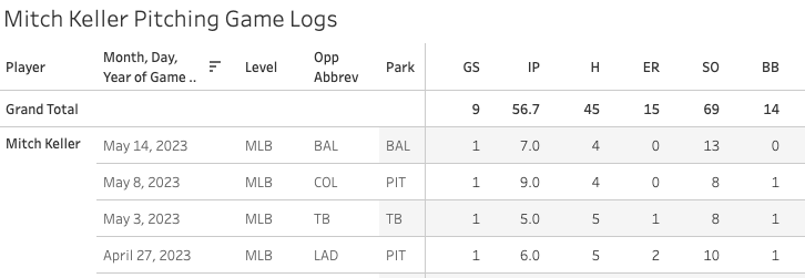 I am not saying Mitch Keller is not actually a very good pitcher now, I think he is. The arsenal is great, he keeps hitters off balance and he’s locating everything very well. I just think there’s likely a good amount of K% regression coming, although it’s also possible that will be offset by some easier matchups as we move forward, because he has faced some really good lineups this year.